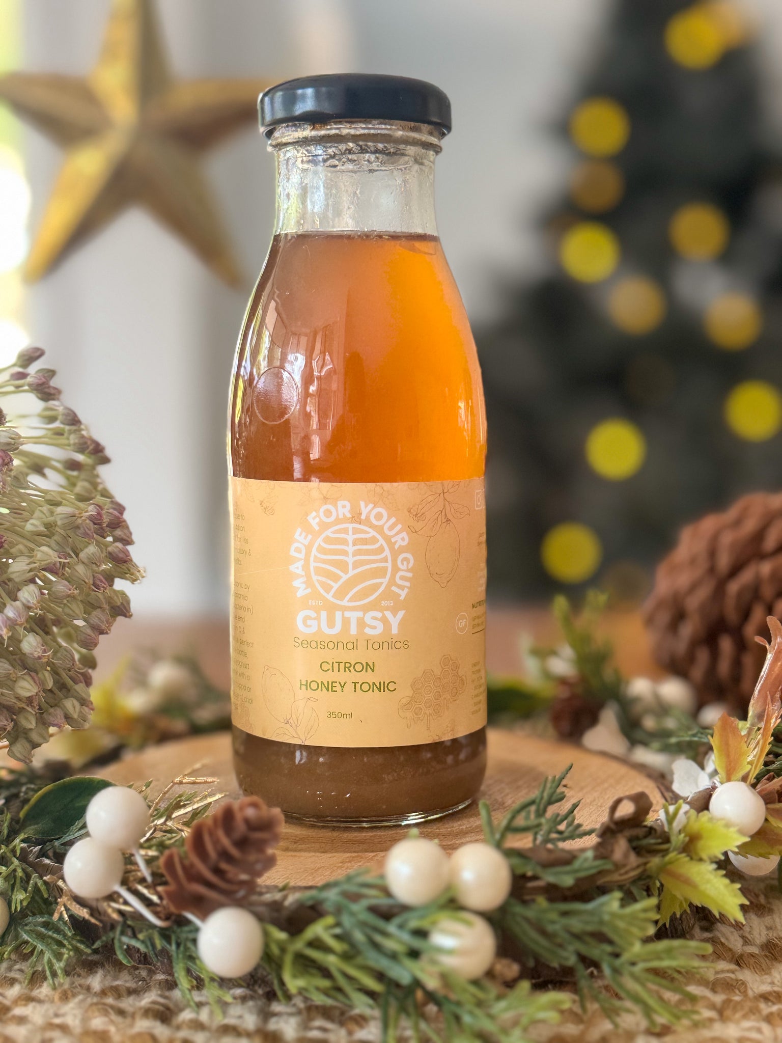 Total fermentation time in one box: Over 6 years of patience. Built for Christmas feasting, summer barbecues, cheese boards, morning rituals and serious gut loving goodness. limited number; many of these ferments won't exist again until 2027-2029. Orders for Christmas GUTSY Box will close on the 21st Dec. As a christmas bonus, for all orders made by 21 December we'll throw in a free bottle of fermented, probiotc shrub valued at $14. 14 years in the making. One very GUTSY Christmas. Malty Chocolate Collagen Powder GUT LOVING / MALTY / BEST SELLER CONTENDER Finally, a hot chocolate powder that loves your gut! Growing up having Milo in milk as one of our childhood comfort drinks, we wanted to share this special core memory with our kids. However, we won't too impressed with the ingredients in the mass produced product we grew up with. So we crafted our very own - GUTSY style! Blending ceremonial grade ethically sourced cacao powder with a touch of pure vanilla ( no weird flavours here- just the real deal) & sweetened lightly with organic coconut sugar, a packet of this malty choc powder never last long in our pantry. Just launched 12 months ago, its definitely becoming a strong contender for one of our best selling products.