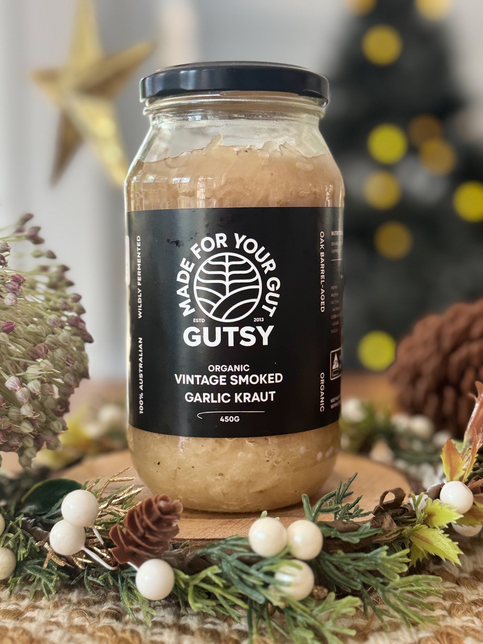 - Vintage Smoked Garlic Kraut - 2 years oak barrel aged